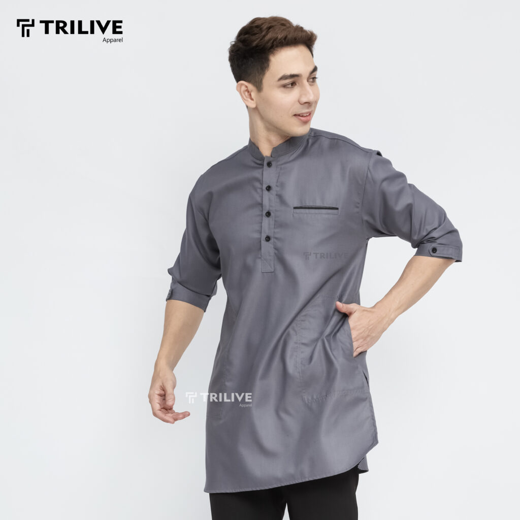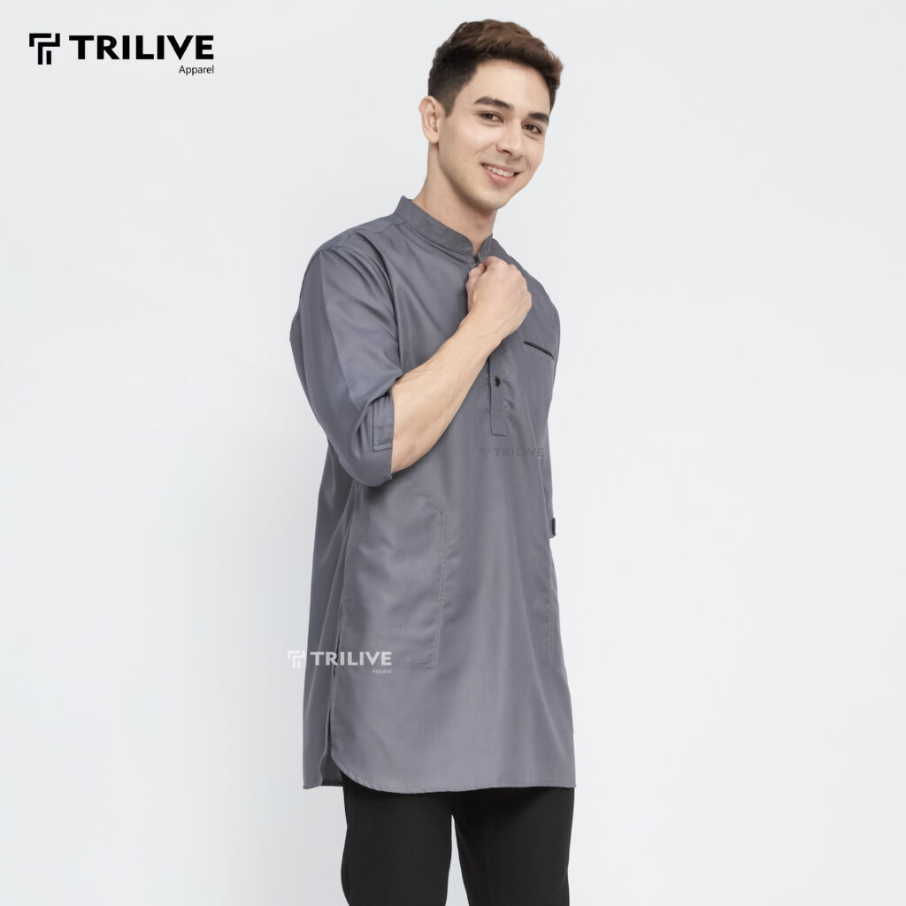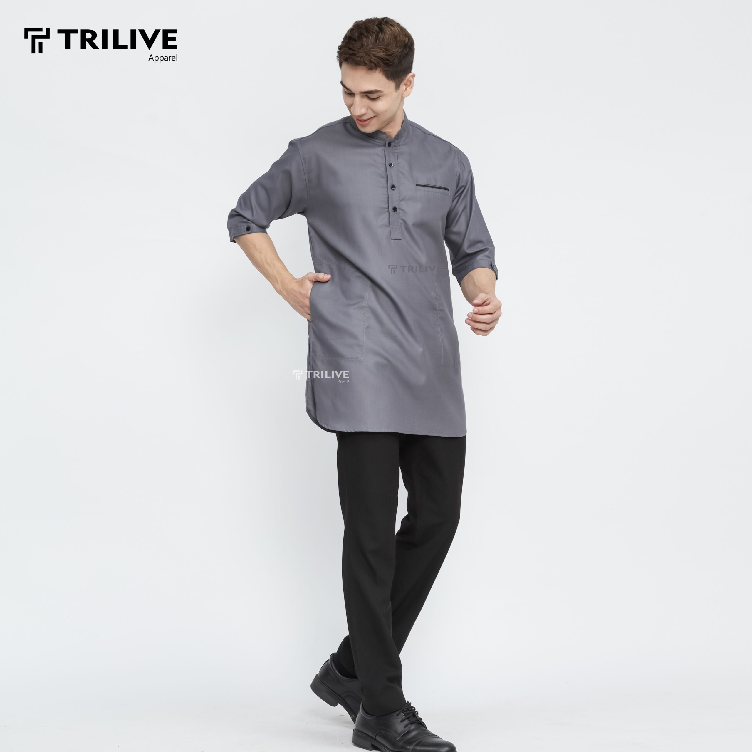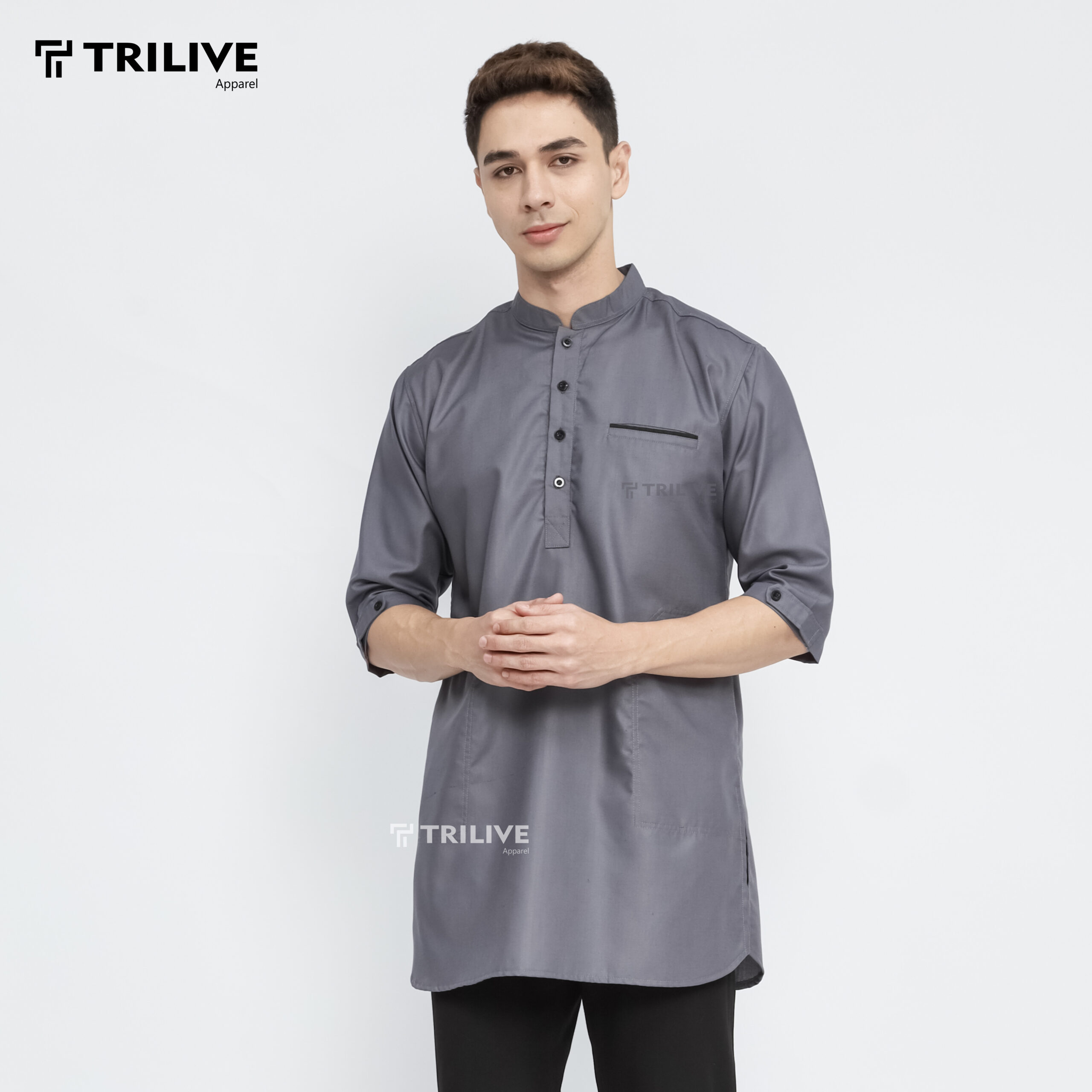 Koko Kurta Pria Dewasa | Kemeja Kurta Premium By TRILIVE X InsanMosleem – Lengan 3/4 – Bahan Tebal