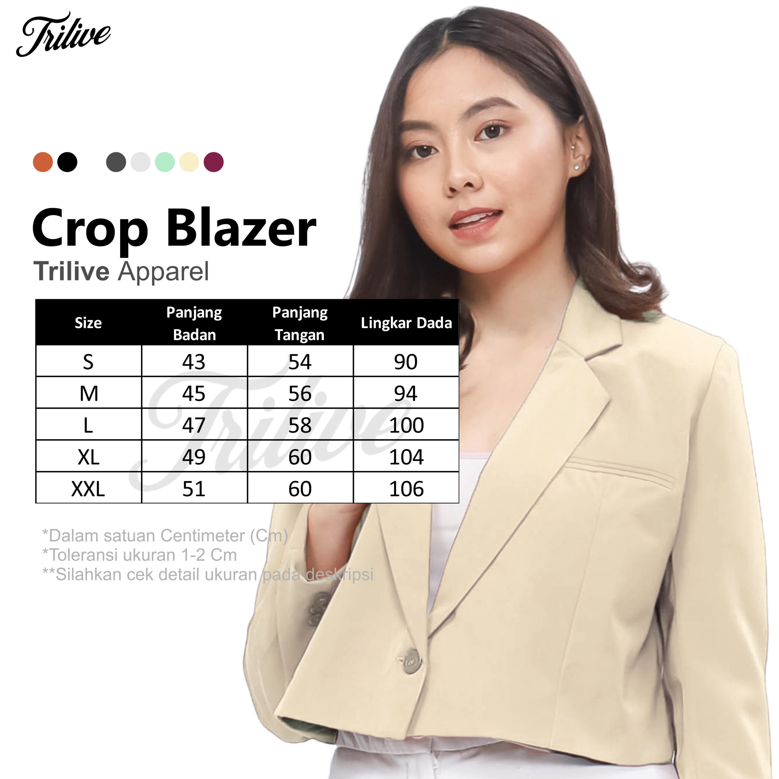 *Trilive memberikan jaminan garansi jahitan selama 6 bulan dan 3 hari untuk tukar ukuran. Pelajari selengkapnya mengenai ketentuan dan syarat garansi. Jika terjadi kendala pada pesanan silahkan hubungi Customer service kami.