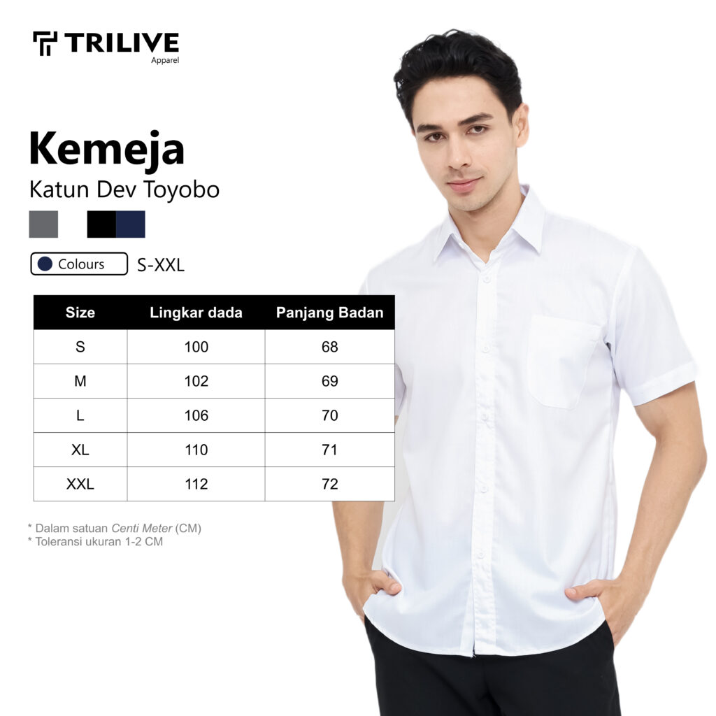 Kemeja pria lengan pendek polos formal by Trilive dengan bahan yang soft and confortable to wear.