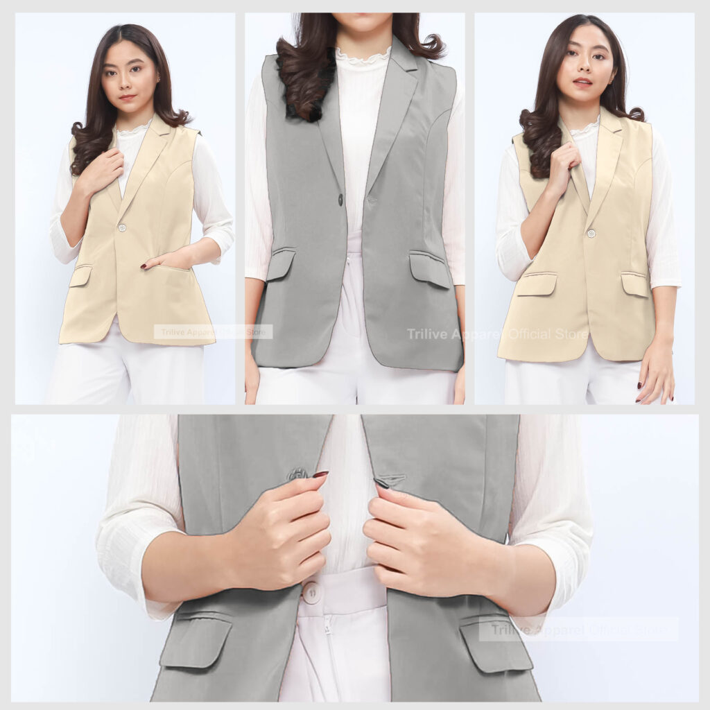 Spesifikasi Produk – TRILIVE Jas Tanpa Lengan Wanita (Waistcoat) :