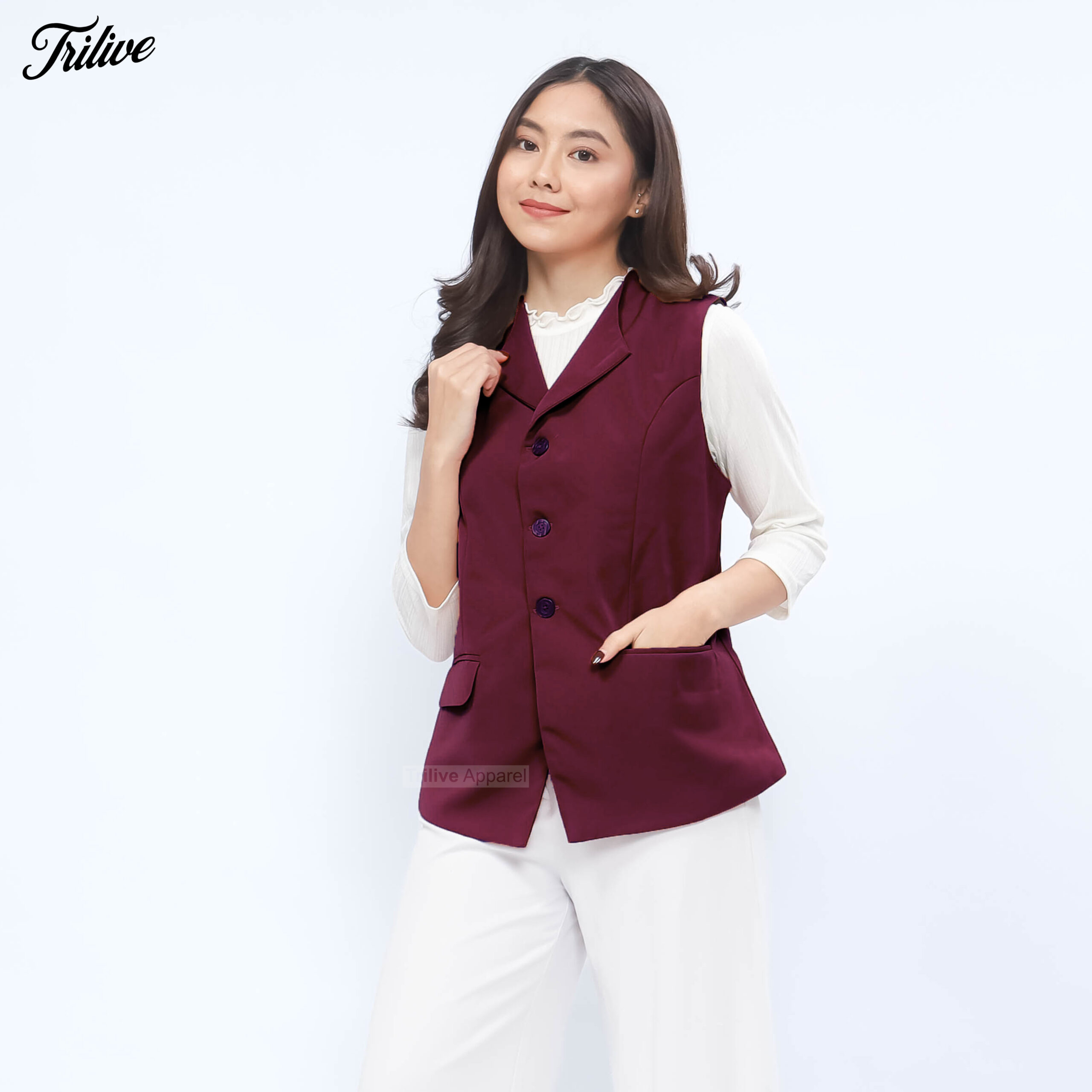 TRILIVE – Vest Wanita Casual Rompi Tanpa Lengan Premium Cotton